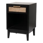 Black Wood 1 Drawer and 1 Shelf Accent Table with Cane Front Drawer