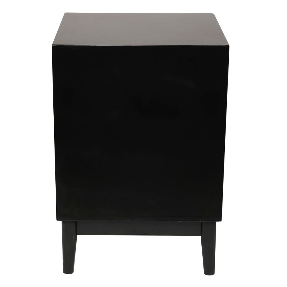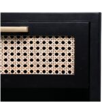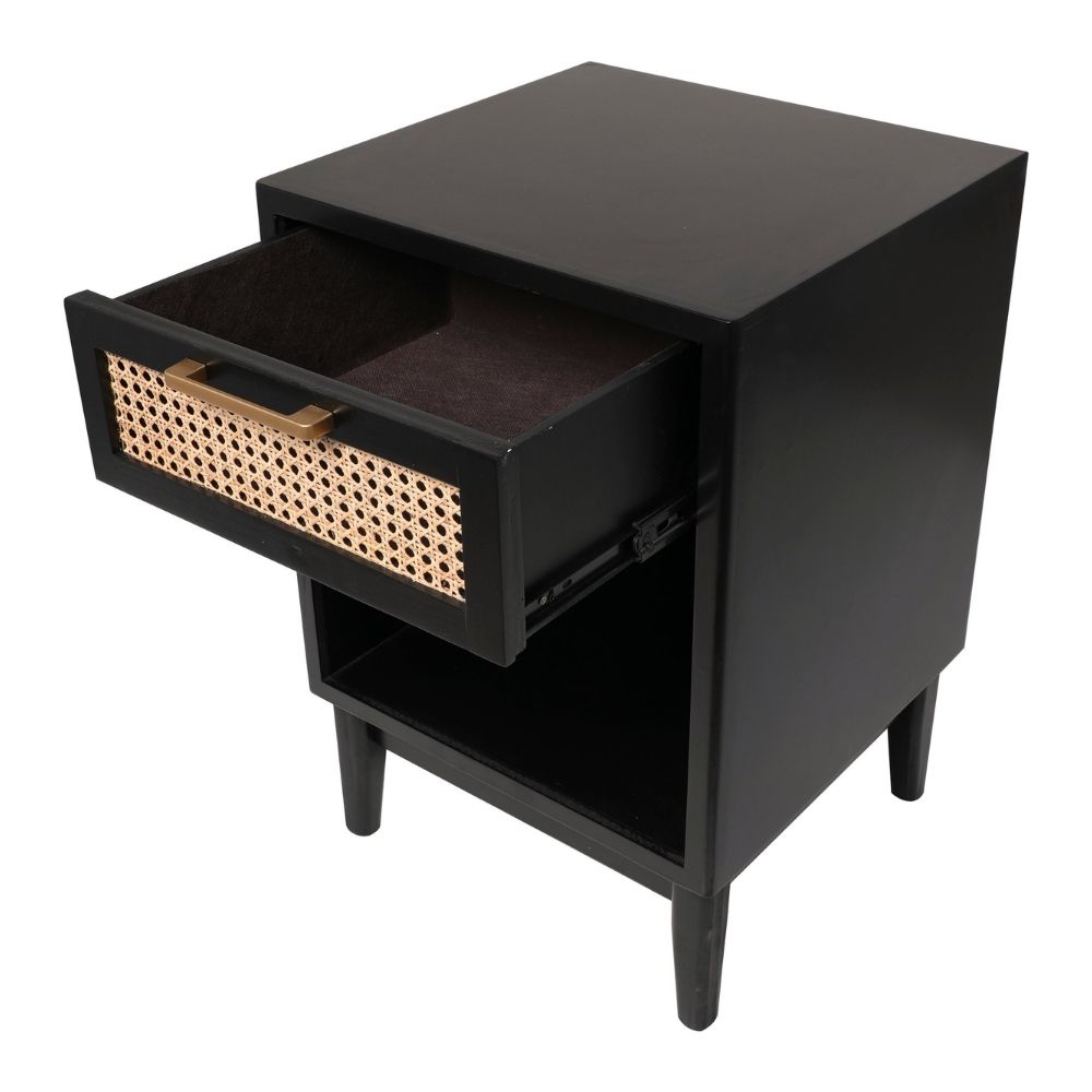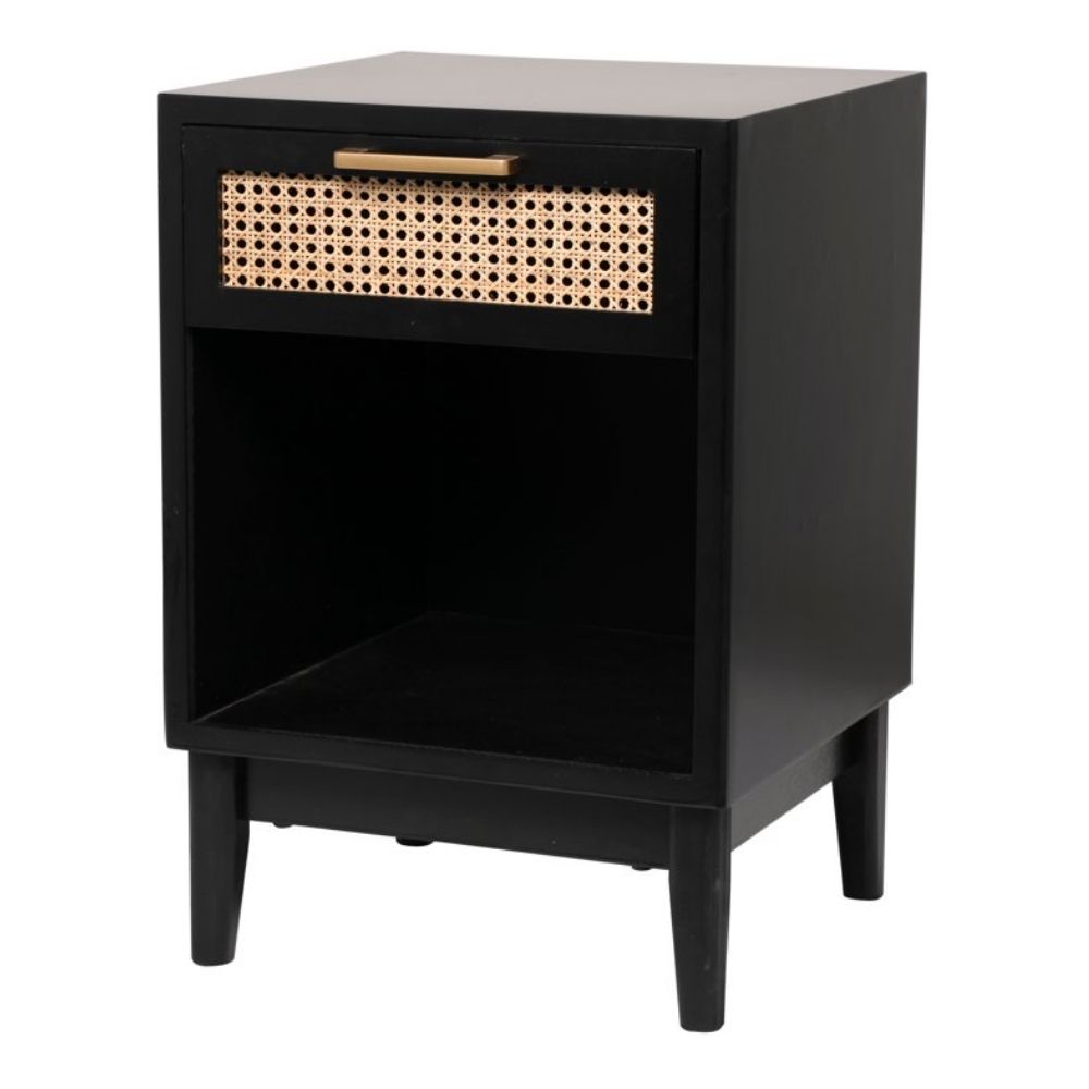 Home Cafe Furniture Black Wood 1 Drawer and 1 Shelf Accent Table with Cane Front Drawer