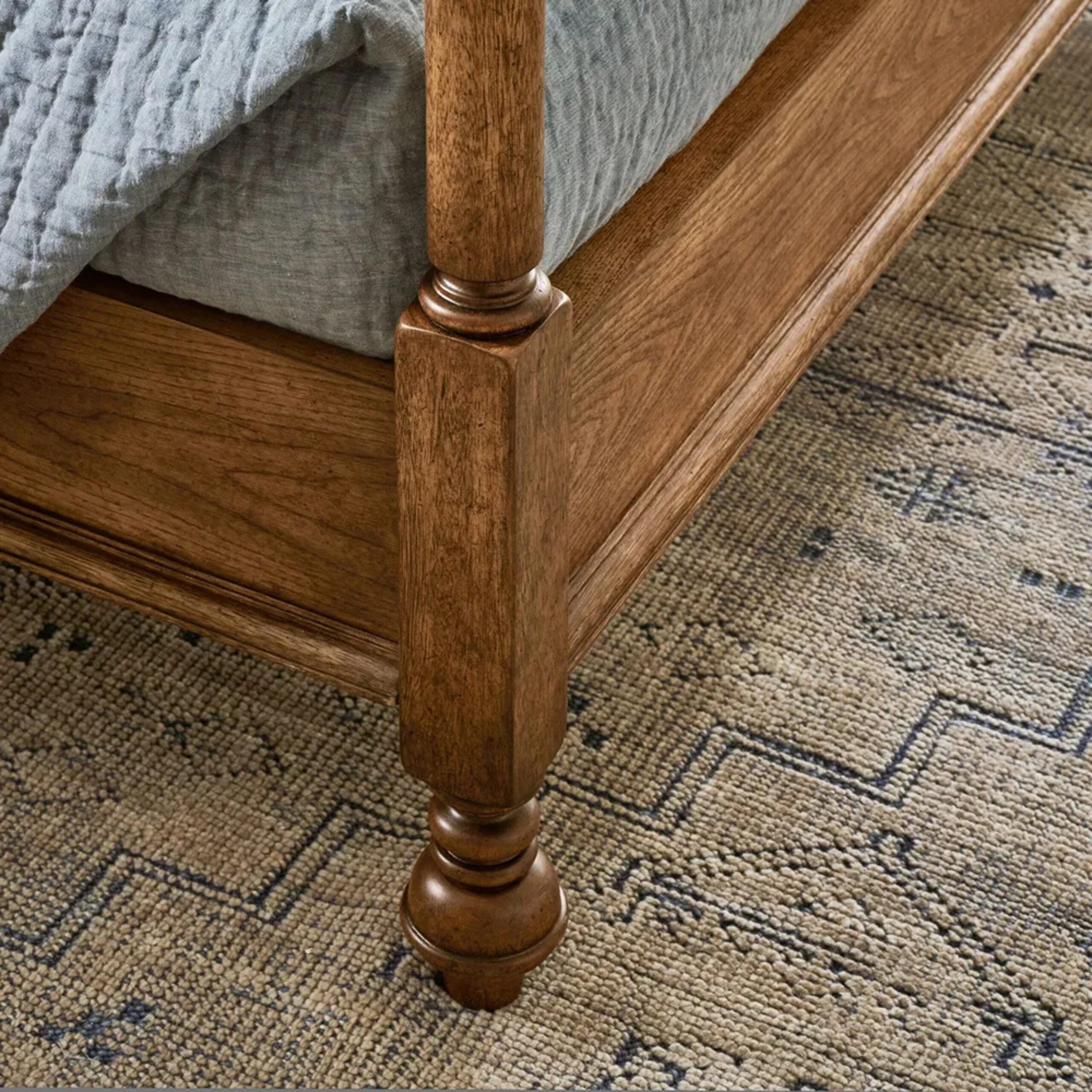 A touch of tradition with fresh appeal. With all the hallmarks of the vintage piece that inspired it, our bed is an heirloom in the making. Crafted from acacia wood, its ornately turned feet and posts echo timeless craftsmanship.