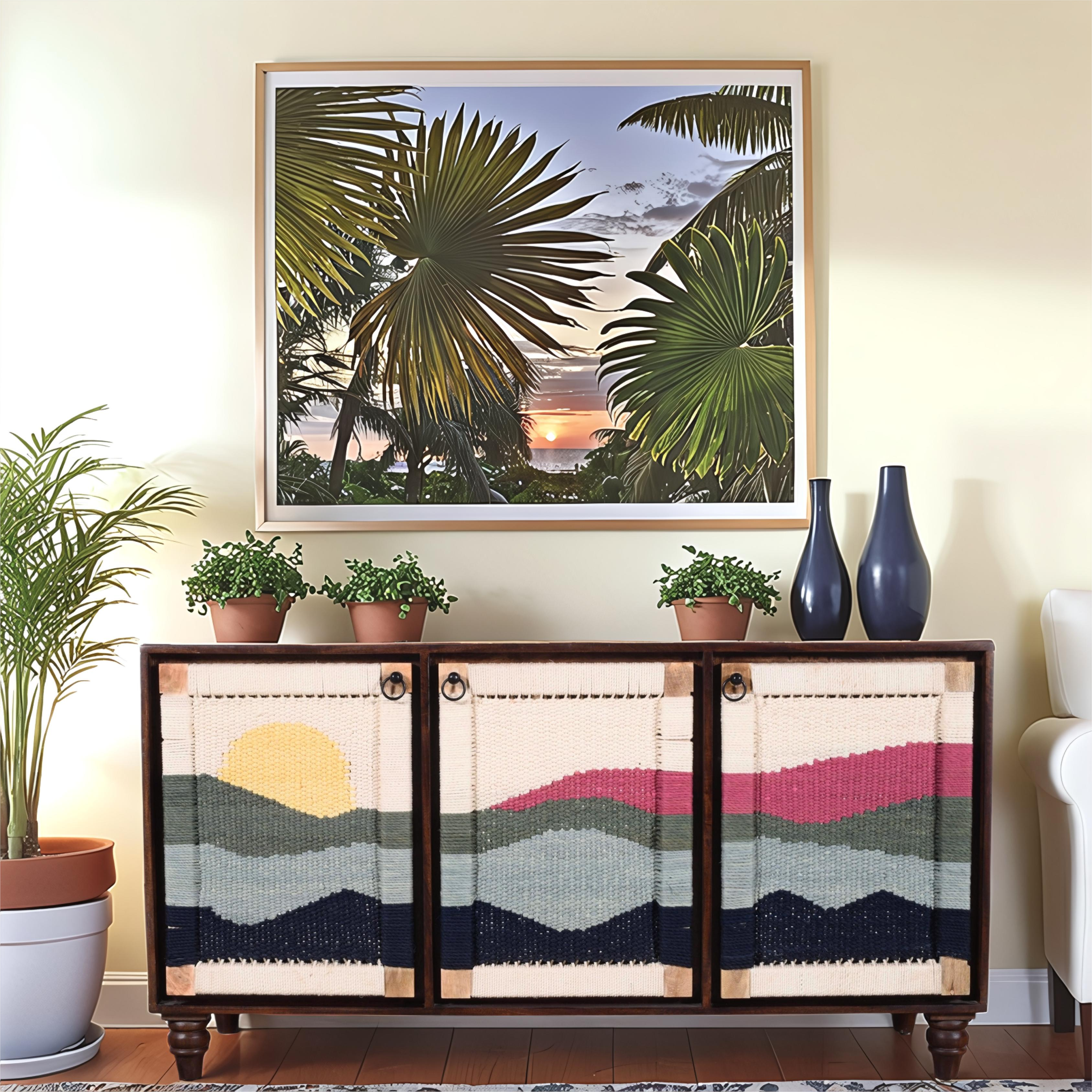 The Mesa Loom 3-Door Sideboard is a perfect union of refined craftsmanship and functional design. Featuring intricately woven detailing on its front panels, this sideboard brings a touch of artisanal texture to your living or dining space. The natural wood grain pairs beautifully with the loom-inspired facade, creating a statement piece that’s both warm and sophisticated.