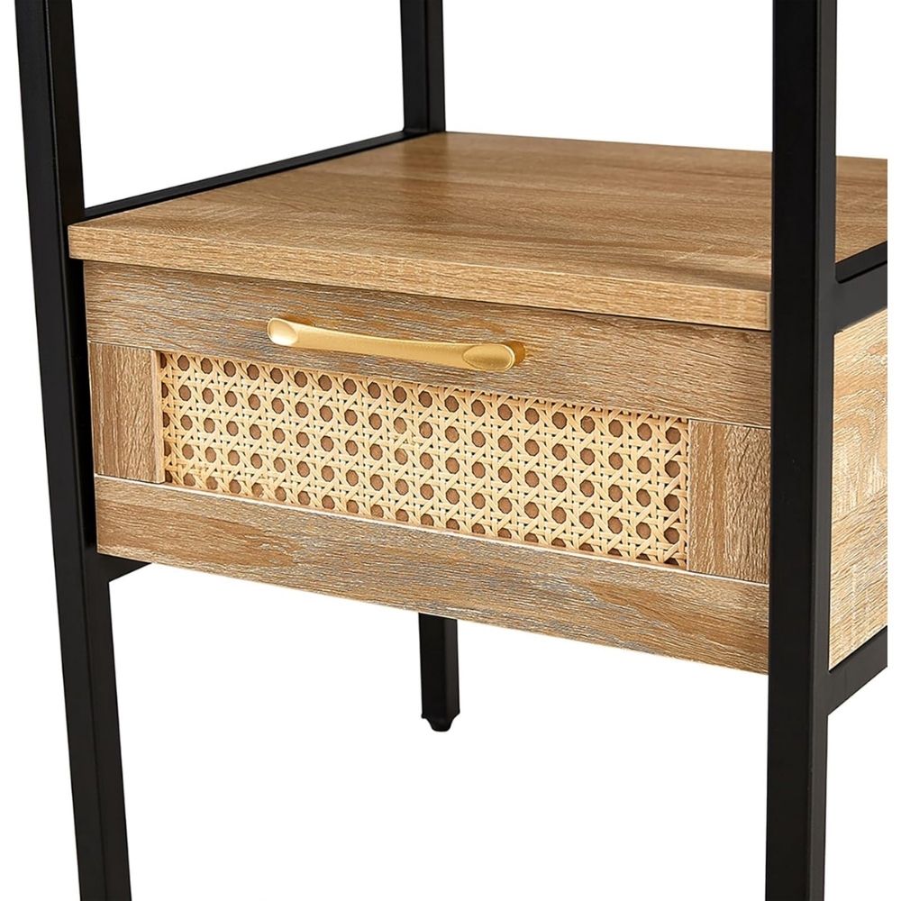 Rattan Cane End Table with Drawer