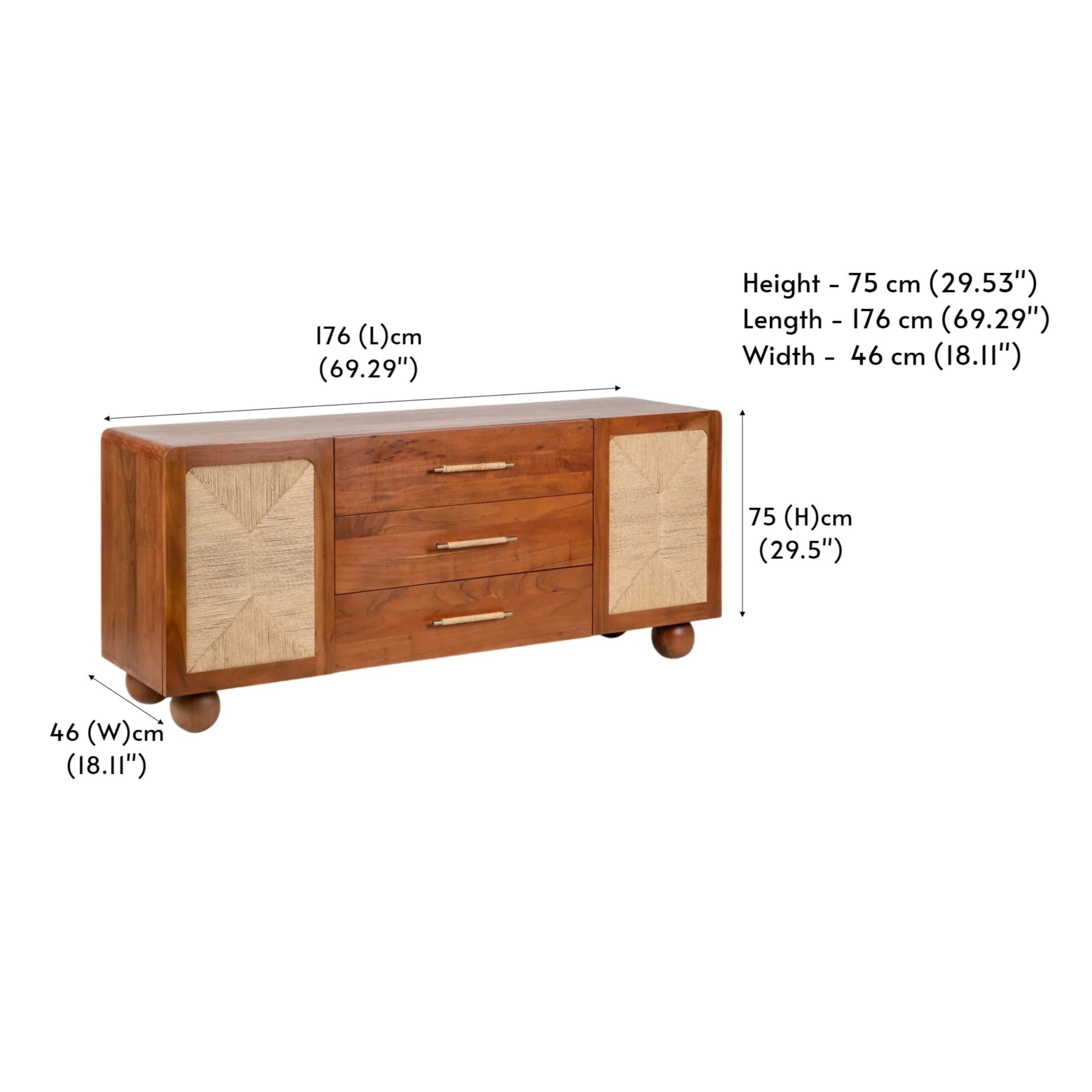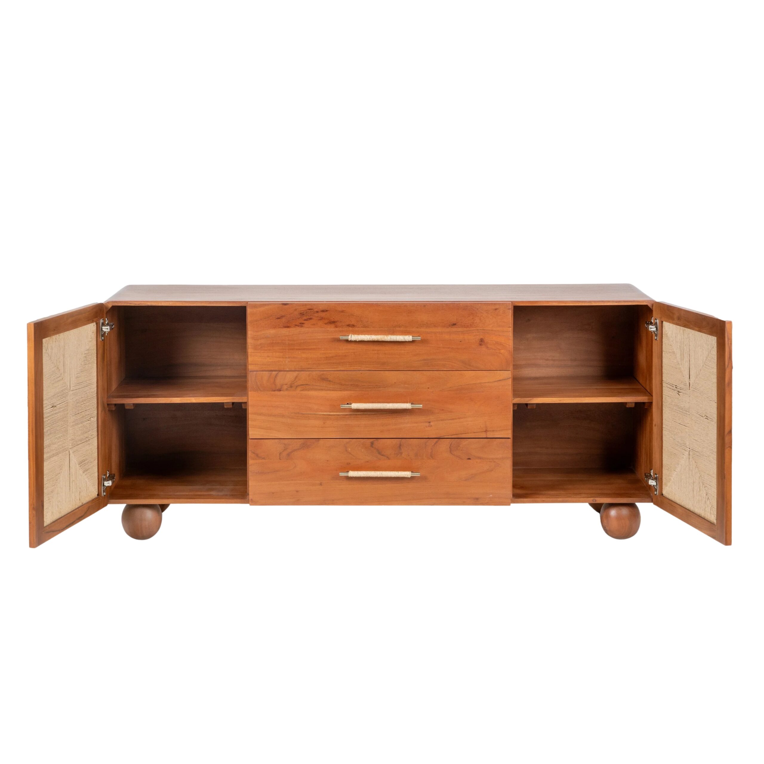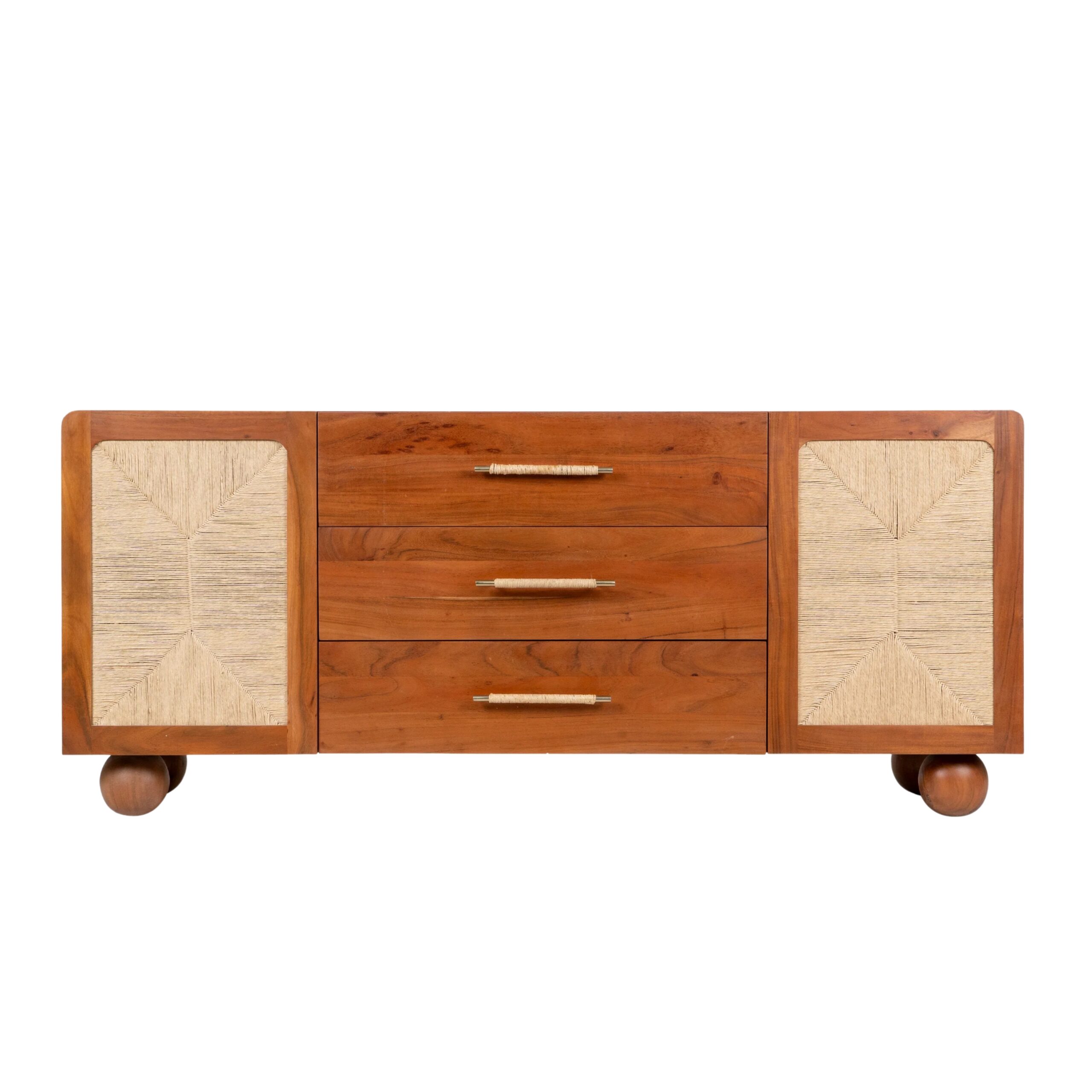 Discover the perfect blend of craftsmanship and playful design with the Tierra sideboard. This piece features intricately woven Danish cord and elegant golden brass handles, all beautifully highlighted by the rich grains of acacia wood. More than just a functional storage solution, the Abacus sideboard serves as a statement piece that adds warmth and sophistication to your living room, dining room, or any space in need of stylish storage.