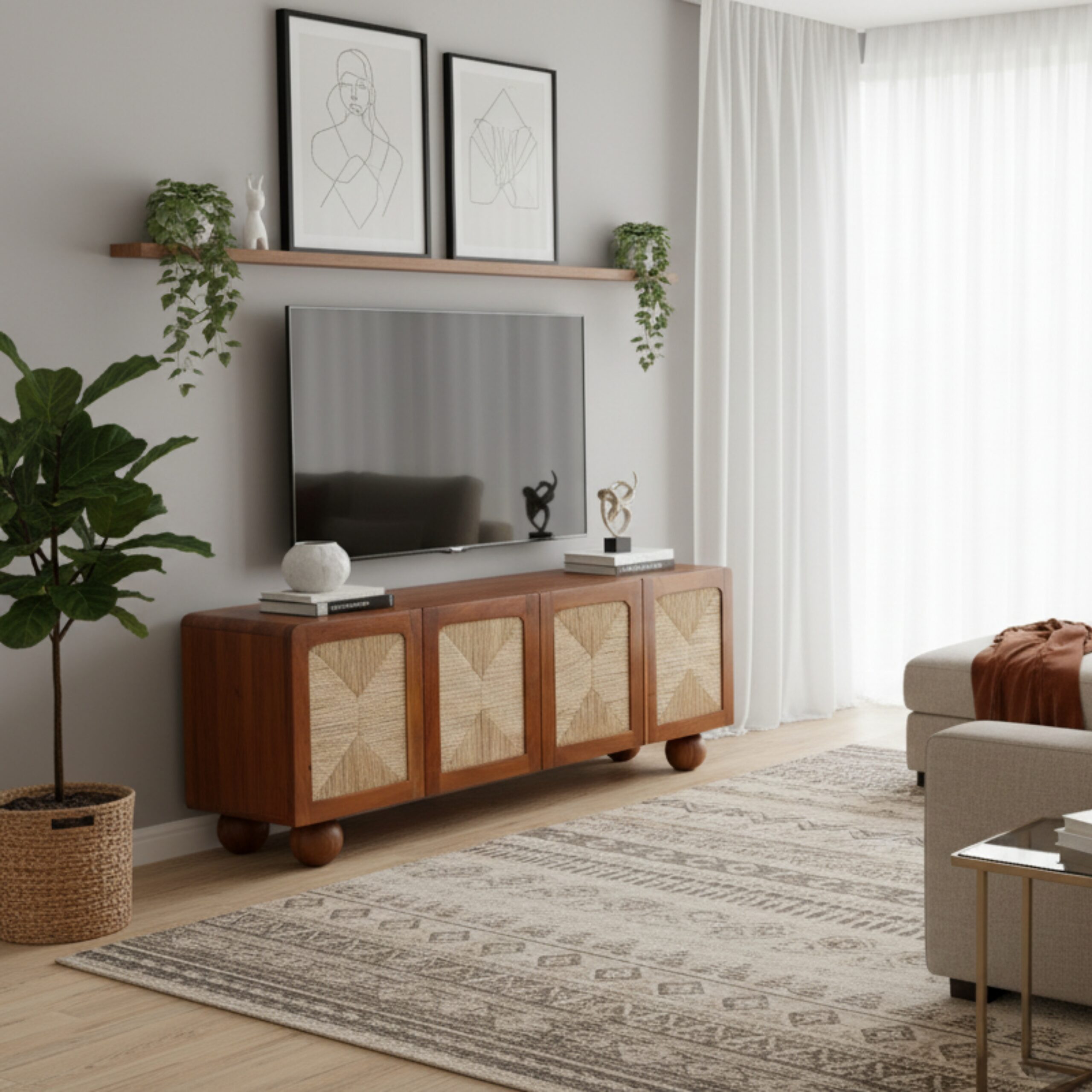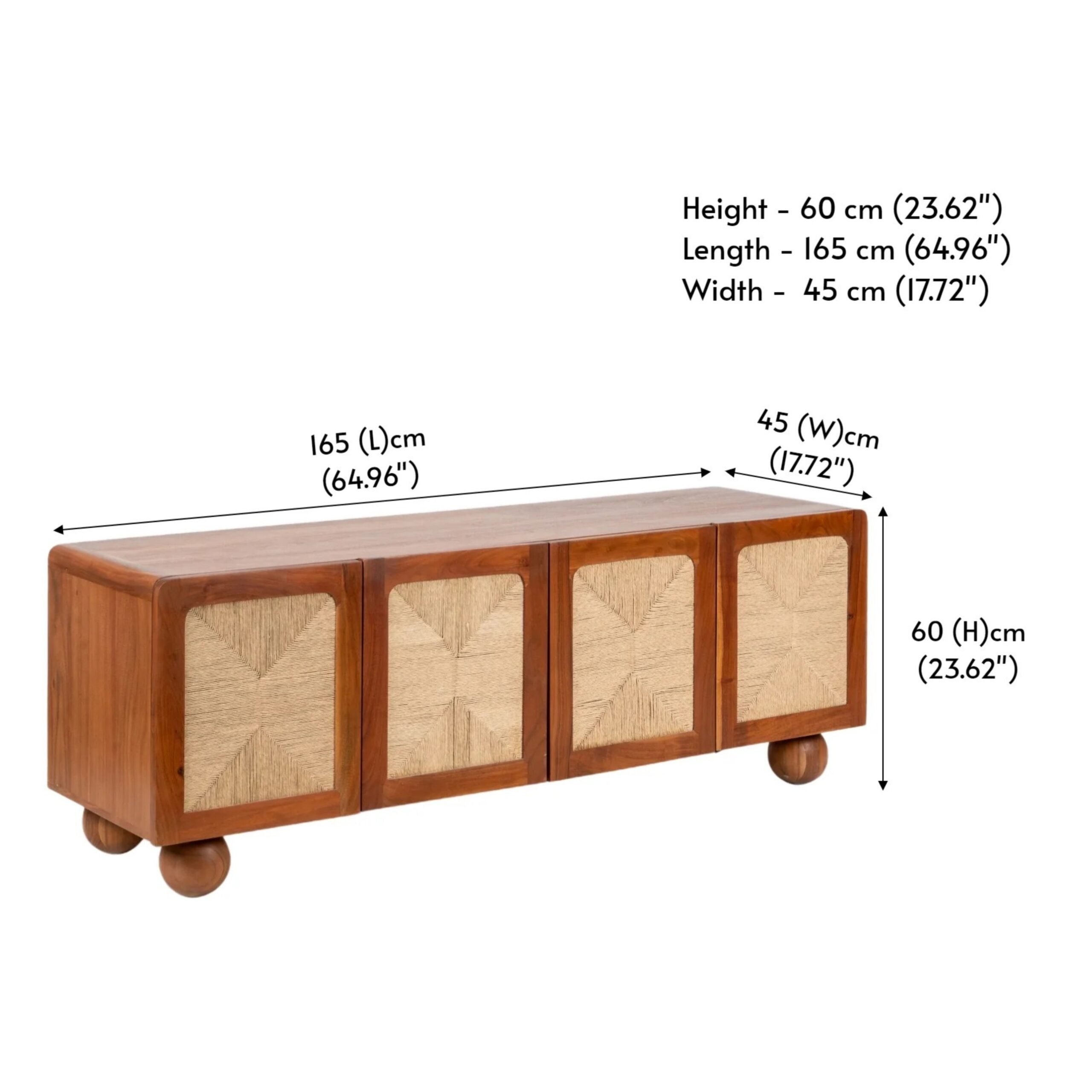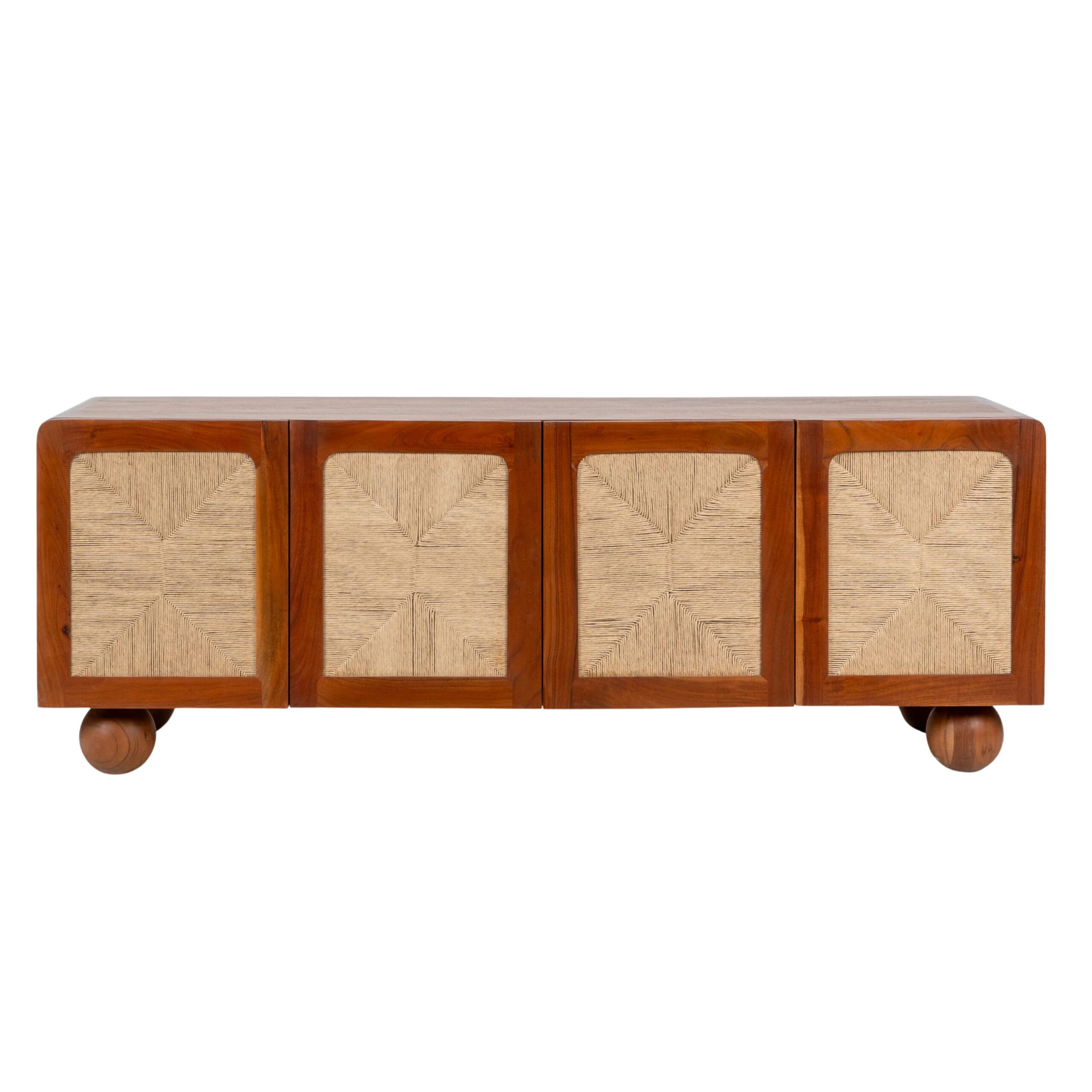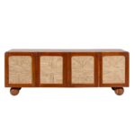 The stunning Abacus Television Cabinet is a seamless blend of craftsmanship and structure. Supported by spherical acacia wooden legs reminiscent of beads, it features a beautifully handwoven cabinet design that appears to float effortlessly. Designed with functional elegance and perfect as a wooden TV unit, living room TV cabinet, or TV unit cabinet with storage, its thoughtful design complements your space.